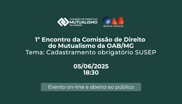 Sobre o Encontro1º 1º Encontro da Comissão de Direito do Mutualismo da OAB/MG 05 de junho de 2025 - 18:30 - Online